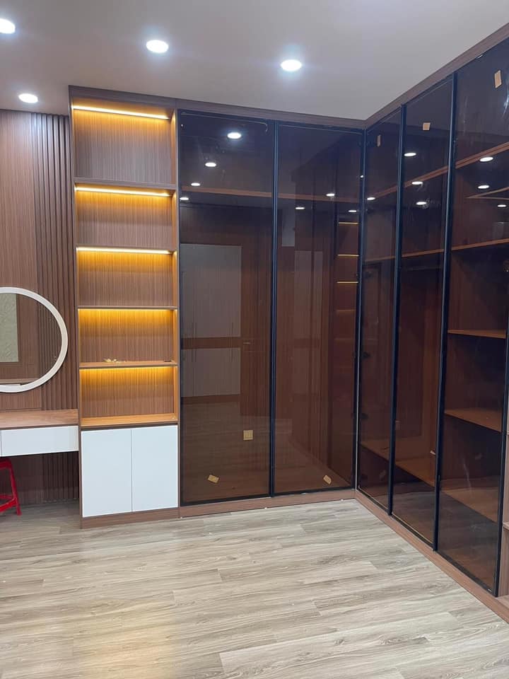 Chất liệu cánh tủ: Kính cường lực an toàn (trong suốt/mờ/hoa văn), viền nhôm chắc chắn.