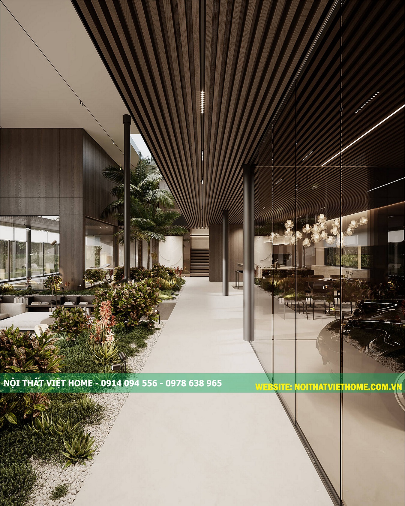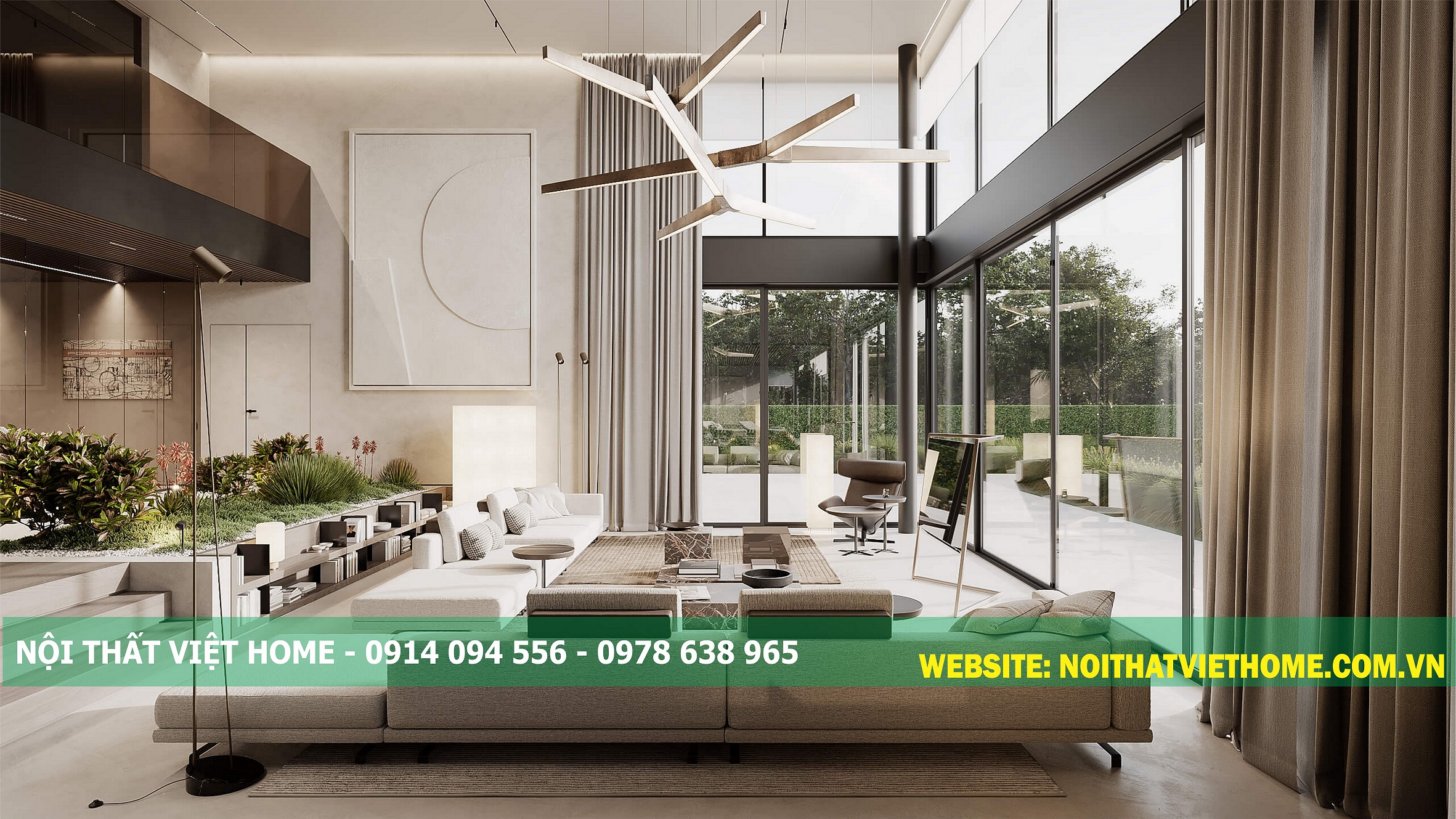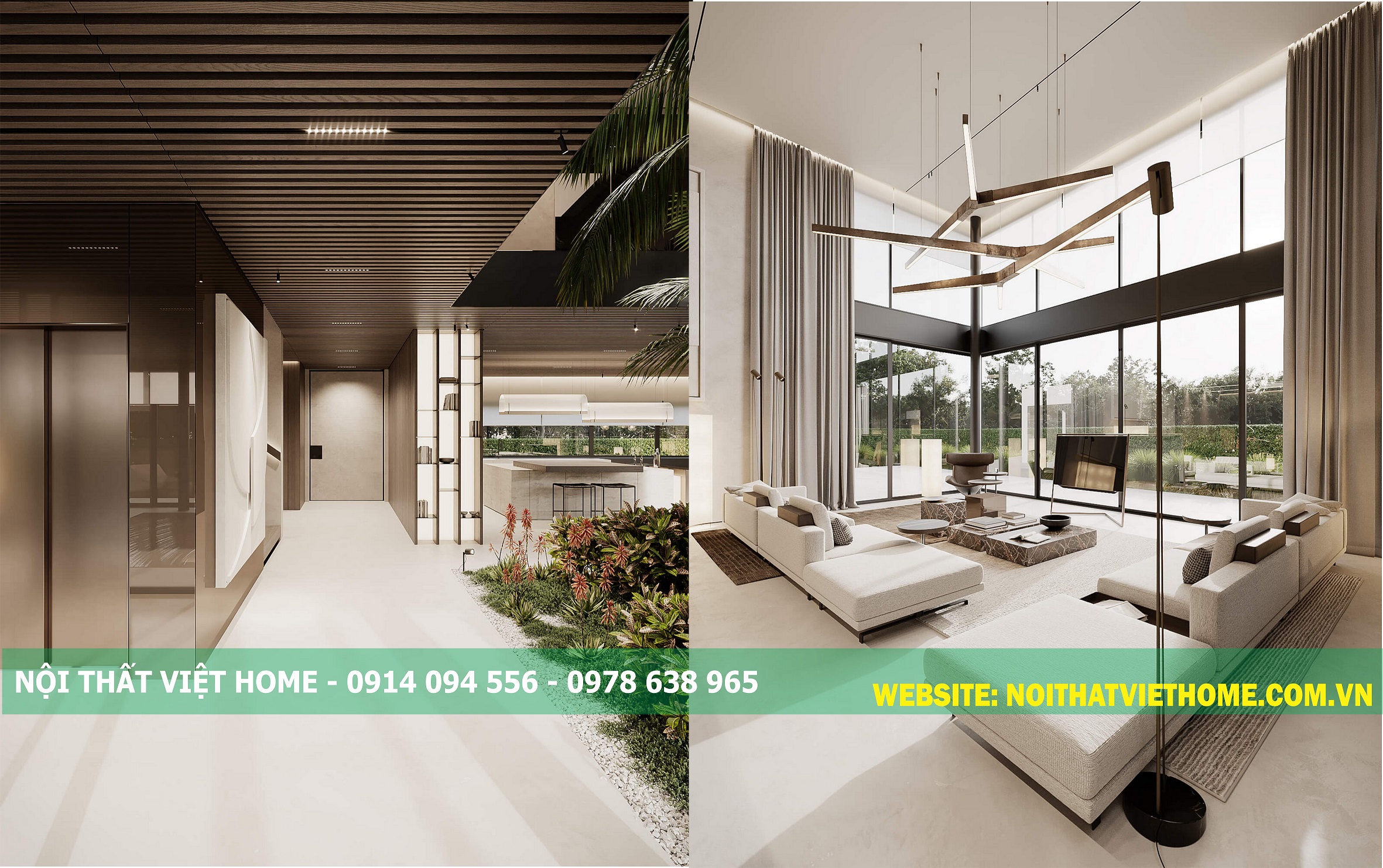 Thiết kế nội thất biệt thự không gian mở luôn là tạo cho khách hàng có không gian sống gần với thiên nhiên, các không gian gần như không có giới hạn bởi vách kính trong . Khách hàng luôn có cảm giác gần gũi với thiên nhiên – Ánh sáng – cây xanh – cảnh quan …